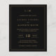 Simples convite de casamento orçamentário com um design moderno, mas elegante, com seu monograma de duas letras no topo, um layout ousado de data e seus detalhes cercados por uma borda fina. Todos os elementos de design estão em dourado falso sobre um fundo preto e podem ser alterados na ferramenta de edição de design. Um design chic e na moda que é excelente para um casal minimalista.