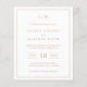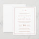 Simples convite de casamento orçamentário com um design moderno, mas elegante, com seu monograma de duas letras no topo, um layout ousado de data e seus detalhes cercados por uma borda fina. Todos os elementos de design estão em cor-de-rosa rosa dourado falso sobre um fundo branco e podem ser alterados na ferramenta de edição design. Um design chic e na moda que é excelente para um casal minimalista.