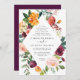 Um convite de casamento elegante e moderno com um tema de outono. Flores e folhagem criam uma moldura de diamante em volta do convite de casamento. A floral de aquarelas do outono inclui rosas amarelas e de ameixas, flores escamosas, mães vermelhas poeirentas e folhas de outono. O convite para o casamento de outono inclui espaço para o primeiro e sobrenomes casais. Personalize o convite para o casamento outono com seus detalhes de casamento. Este convite corresponde à nossa coleção "Autumn Elegance".