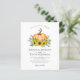 Este design moderno tem uma vibe de Outono com seus belos girassóis em aquarela e folhas de eucalipto em torno de uma abóbora. **POR FAVOR, LEIA ANTES DE COMPRAR** Nossa linha de papelaria econômica Petite mede 4,5" x 5,6" e cabe dentro de um envelope A6, que está disponível em todos os tipos de cores na papelaria local ou você pode adicionar envelopes brancos ao seu pedido antes de finalizar a compra. Cada folha é um convite - não é necessário corte. O cartão é branco brilhante com acabamento semi-brilho e peso de 110lbs, adequado para convites. NÃO recomendamos que você escolha a opção de papel de seda, pois é um papel muito mais fino de 80lb, mais parecido com páginas de revista do que cartão. Se você preferir um convite de tamanho Clássico 5x7 impresso em cartão de 120lb com acabamento fosco, você pode transferir este design para um Cartão Plano usando as opções de transferência de design. Os cartões planos não estão na faixa de orçamento, mas você tem uma escolha mais ampla de tamanhos e opções de cartão e eles são enviados com envelopes. A forma e o tamanho mais adequados para o design aparecer