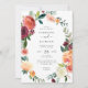 Um convite elegante para o casamento no outono, com flores de aquarela e tipografia moderna. A estrutura floral rústica inclui rosas e mães em tons bonito de vermelho de amora, marrom, pêssego, ameixa e rosa-pincel. Personalize com seus detalhes de casamento para um convite de casamento moderno e rápido. Parte da nossa coleção de casamento "Autumn Elegance".