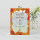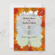 Adicione as informações do seu casamento de outono a este belo cartão. Todo o texto é ajustável para mover, redimensionar e alterar a fonte e a cor. Converta isso para qualquer ocasião. No meio do campo, uma mesa branca, com aspecto antigo, com cadeiras. Por cima da mesa está um pote de flores com flores vermelhas. Ao fundo estão as árvores que começam a mudar com o outono antecipado.