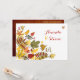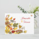 Se você está planejando um casamento informal de outono em um local ao ar livre ou celeiro e deseja ter um visual e um clima descontraídos e relaxados no seu dia especial, então este convite de casamento moderno pode ser exatamente o que você precisa para unir todo o tema. Com uma paleta de cores quentes que inclui laranja queimado escuro, dourado, amarelo, verde, marrom e branco, certamente será um sucesso. O design apresenta uma variedade de folhas de outono ilustradas, cápsulas de sementes e frutos. O verso tem um padrão de linho marrom escuro acobreado com contornos do design que está na frente. Este convite de casamento muito acessível tem muito charme sem um grande preço. Seria perfeito para um tema de casamento moderno de outono.