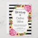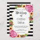 Convite De Casamento De Padrão De Frame Floral De Watercolor. Lindas rosas de aquarela com os detalhes clássicos do convite com o padrão de listras preto e branco. Você pode personalizar o texto e as cores clicando no botão personalizar e mudar os nomes da noiva e do noivo, data e local do casamento. Por favor, sinta-se à vontade para me contactar para obter ajuda ou personalização.