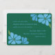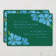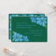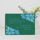 Flores grandes, arrojadas e estilizadas, azuis-céu suportam detalhes de casamento em um verde-caçador rico — ou uma cor complementar da paleta de cores de seu casamento. Monograma.