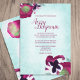 Este convite para casamento de flores no outono com pânico magenta é perfeitamente coordenado com envelopes, etiquetas de endereço de retorno e favoritos para festas. Escolha entre tamanhos e estilos nesta coleção. Estes anúncios de turquesa pálida e magenta são perfeitos para sua queda ou casamento no inverno. Personalize facilmente esta design para sua formatura, Quinceanera, ou convite do Bat Mitzvah! Este design traz uma bela flare a uma celeste, turquesa pálida, rosa quente, burgundy, cor-de-tema ameixa.