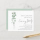 Um valor para o alternativo do ORÇAMENTO em tamanho menor de 4,5 x 5,6" de semirbrilho de 110 lbs, que é de espessura semelhante a um cartão postal (no entanto, não é adequado para uso como cartão postal). POR FAVOR, OBSERVE QUE HÁ UM convite por folha. Orçamento Eucalyptus QR Code Noite Convite de Casamento do Partido. Estilo botânico minimalista para convidar seus convidados noturnos. Um roteiro manuscrito para o Partido da Noite e o resto do texto que você pode personalizar facilmente. Um galho elegante de folhas de aquarela eucalipto corre pelo lado esquerdo. Substitua o código QR de amostra no verso por um que se aproxima da página de instruções do site do seu local. Os códigos QR podem ser facilmente criados online. Pesquisar gerar código QR.