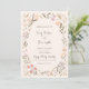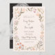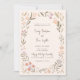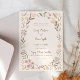 Cartão de convite de casamento branco com ilustração desenhada à mão de flores em cores pastel.