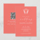 Economize no papel e dinheiro com este convite de casamento do orçamento monograma com o código QR. Um design simples mas clássico, este convite de casamento apresenta ambas tipografia caligráfica com uma fonte clássica sans em branco sobre fundo de pêssego. Uma crista elegante molda a noiva e as iniciais do noivo. A placa se reverte para uma cor de correspondência sólida com o seu código QR de casamento e espaço para detalhes adicionais. Todas as cores são personalizáveis para sua perfeita correspondência de cores. Ver convites de casamento mais sustentáveis numa visita orçamental www.zazzle.com/dotellabelle
