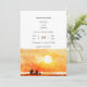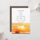 Capturar a beleza serena de um piquenique de praia no pôr do sol com nosso Ouro Mínimo de Aquarela Convite de casamento Picnic Sunset. Esta carta apresenta uma cena impressionante onde o sol se põe sobre o oceano, lançando laranjas quentes e amarelos através do céu. O horizonte baixo melhora o tranquilo ambiente, complementando perfeitamente o simples picnic configurado na praia arenosa. Um cesto e cobertor espalhados na areia criam uma atmosfera acolhedora, enquanto as silhuetas escuras de um casal sentado e desfrutando da vista adicionam um toque de romance. Ideal para casamentos na praia, este convite dá o tom para uma celebração memorável do mar. A design de aquarela minimalista garante que seus detalhes de casamento se destacem, fazer uma excelente manutenção para seus convidados. Personalize com seus nomes, data e local para fazer com que este convite seja exclusivamente seu. Celebre o amor e a natureza com este encantador convite para o casamento na praia, perfeito para capturar a essência do seu dia especial.