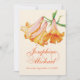 Bela campainha laranja Lily belo convite para casamento de arte. Edite este convite com suas palavras. Design único e pintura original a lápis e a aquarela de arte por Sarah Trett.