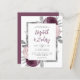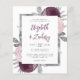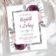 Este design apresenta buquês exuberantes de flores mauve, poeirentas, rosa e prateadas adornando um quadro retangular de folha fina prateada. Personalize o texto em um fundo branco com os primeiros nomes da noiva e do noivo em um roteiro moderno de escrita manual, com a data, hora e local de casamento em fontes de sans serif de cinza carvões. A parte traseira da placa é uma sombra de massa sólida correspondente.