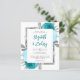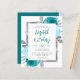 Este design apresenta buquês exuberantes de tartaruga e flores prateadas enfeitando uma estrutura retangular de folha fina prateada. Personalize o texto em um fundo branco com os primeiros nomes da noiva e do noivo em um guião moderno de escrita manual turquesa, com a data, hora e local de casamento em cinzas de carvão serif. A parte traseira da placa é uma sombra de turquesa sólida correspondente.