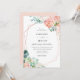 Belo rosa geométrico de ouro e aquarela floral e folhagem com convite de casamento verde, pêssego, branco e rosa. A parte traseira da placa apresenta cor rosa pétala sólida.