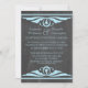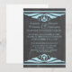 Convocação de Casamento Deco Chalkboard Elegante e chic com uma textura de quadro chalkboard de tendência, para olhar para o fundo e um par de bordas de espiral de deco de arte azul clara. Este adorável convite para o casamento é perfeito para um casamento temático de arte deco de 1920. Fácil de personalizar, simplesmente adicione seus detalhes de casamento. Clique em "Personalizar" para encontrar opções adicionais de personalização.