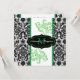 Este casamento tema damasco preto e branco monograma dramático tem acentos de rolhas verdes e um monograma verde em um rótulo preto central. Este convite seria perfeito para um primavera, verão, outono ou casamento no inverno, e também funcionaria bem para outros eventos formais que exigem classe e gosto. É mostrado aqui no papel básico. O papel linen também seria bom, mas se você quiser um papel mais pesado, eu sugiro o papel metálico de gelo, que daria a ele um adorável luster opalescente. ****Observe que os papéis coloridos (prata metálica e ouro, feltro e manchado) alterarão todas as cores no design. ALÉM DISSO, se você redimensionar o convite ou se você alterar fontes ou o tamanho da fonte, parte do design e/ou texto pode ser cortada. Tudo será impressão como você vê no seu monitor. Não verei seu convite, e Zazzle NÃO corrigirá nada (digitação, alinhamento etc.). O texto e o papel são todos personalizáveis. Se precisar de ajuda para este convite, envie-me um e-mail ANTES de fazer seu pedido. Se você precisar de outros itens correspondentes, envie um email para niteowlstudio@gmail.com.