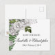 Este adorável cartão de convite de casamento apresenta um lindo buquê de rosas brancas, folhas de rosa, pétalas e frondes decorativas de samambaia verde no canto esquerdo. Todos os detalhes podem ser personalizados facilmente. Este anúncio de casamento com flores brancas é na verdade parte de uma suíte de casamento correspondente maior, que você pode ver aqui: https://www.zazzle.com/collections/pink_roses_and_ferns_wedding-119521965467361430