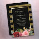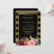 Este elegante convite de casamento combina moderno e chic com rosas de casamento tradicionais. Ele apresenta uma imagem impressionante de cor-de-rosa e rosas vermelhas com verde na parte inferior. A imagem é colocada sobre um quadro de ouro brilhante. Seu texto personalizado está em ouro claro no centro. Tudo é colocado sobre um fundo preto dramático e falso de faixa de ouro brilhante. A parte de trás do convite é preto sólido. Elegante, moda, e apropriado para casamentos em qualquer estação!