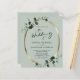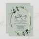 Orçamento Eucalyptus Dourado Código QR RSVP Convite de Casamento de Sage... Nosso convite de casamento de RSVP de Código QR de barato apresenta um falso quadro de oval dourado embelezado com folhas de eucalipto de abas esmeraldas em um fundo de sábio leve. A caligrafia moderna do chic exibe o texto de "Casamento de", "e", assim como a "recepção a seguir" acompanhada de uma tipografia serif elegante para o texto que você pode personalizar. A parte traseira do convite exibe o código QR do seu site de casamento, bem como o próprio URL do site, permitindo que seus convidados facilmente RSVP on-line e visualizem todos os detalhes normalmente enviados em um pacote de casamento. Este convite de casamento ao estilo moderno foi concebido para ser elegante e consciente do orçamento... para não mencionar a poupança de tempo. O exemplo de gráfico de código QR e todo texto de exemplo (além dos elementos de caligrafia gráfica) pode ser facilmente revisado com suas próprias informações sobre o modelo de personalização.