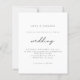 Um valor para o alternativo do ORÇAMENTO em tamanho menor de 4,5 x 5,6" de semirbrilho de 110 lbs, que é de espessura semelhante a um cartão postal (no entanto, não é adequado para uso como cartão postal). POR FAVOR, NOTE que existe UM por folha. Simples Convite de casamento de Script Branco Preto. Simples elegância em preto e branco, com Casamento em um roteiro de estilo de escrita manual. Personalize facilmente o resto do texto para seus próprios detalhes. Você também pode alterar as cores do texto e do plano de fundo por meio da opção personalizar mais, se desejar.