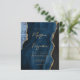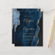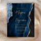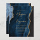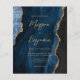Este elegante convite de casamento apresenta uma imagem de fundo da marinho azul de aquarela agada com falso brilho dourado. O texto personalizável combina manuscrito, protetor e fontes itálicas de cor dourada. O verso apresenta um design de agate marinho azul e dourado coordenador.