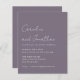 Escritor de Texto Púrpura e Típica Escuro Minimalista de Orçamento e Convite de Casamento de Tipografia de Script com detalhes do site RSVP.