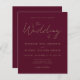 Este simples e moderno convite para o casamento, mostra um texto dourado sobre fundo vermelho burgundy, com as palavras "o Casamento de" na caligrafia de na moda. Adicione os nomes da noiva, noiva e detalhes do casamento em fontes de sans serif douradas. O lado inverso é sólido.