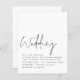 Convite de casamento de Script Elegante Branco Preto. Um alternativo de 4,5 pol x 5,6 pol com preço inferior. Disponível em um STOCK DE CARTÃO SEMI GLOSS 110 lb, que é a opção padrão (recomendada para convites, semelhante à espessura de um cartão postal) OU um STOCK DE PAPEL THINNER FINISH DE 80 lb FINISH (ideal para gabinetes). Os envelopes são um extra opcional e são ligeiramente maiores que o tamanho da placa. Um elegante estilo de conjunto informal para o cabeçalho, com todos os detalhes elegantemente pequenos, com muito espaço em branco para uma sensação contemporânea. Personalize facilmente com suas informações.