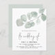 Um valor para o alternativo do ORÇAMENTO em tamanho menor de 4,5 x 5,6" de semirbrilho de 110 lbs, que é de espessura semelhante a um cartão postal (no entanto, não é adequado para uso como cartão postal). POR FAVOR, OBSERVE QUE HÁ UM convite por folha. Artsy Eucalyptus Script Convite de casamento. Um script de estilo manuscrito para O Casamento de e o resto do texto que você pode personalizar facilmente. Um galho de folhagem de aquarela está no topo.