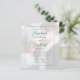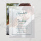 Este convite de casamento simples e minimalista apresenta o texto em elegante roteiro azul-lacrimogêneo e serifas, enquadrado por um retângulo fino. Substitua facilmente a imagem de exemplo por sua própria foto do casal. Uma tela branca sobre a foto ajuda a destacar o texto. A mesma foto aparece sem uma tela no verso.