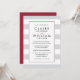 Misturando elementos modernos e tradicionais, nosso convite para o casamento Metro Stripe oferece estilo clássico em uma paleta colorida de cinza vermelha e pálida de morango com letras negras nítidas. Largas faixas horizontais em cinzas e quadro branco seus detalhes de casamento em uma mistura de blocos modernos e tipos tradicionais de script. Uma borda fina em vermelho rico adiciona um contraste inesperado para um pop de cor. Cartões invertidos a vermelhos sólidos. Perfeito para casamentos de inverno ou de férias.