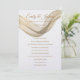 Este convite para o casamento é mostrado em um layout clássico em um fundo branco mostrado em uma opção de papel de Peal Shimmer. Selecione o papel escolhido. Gráfico do Dourado véu revestido pela frente superior. Os nomes dos casais se misturam com o gráfico de véu em uma cor de Ouro no topo. Texto do corpo mostrado em Ouro por baixo da fita do véu. Personalize este item, retirando o texto do exemplo e colocando suas informações nele. Imagem de ações.
