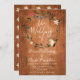 Apresentando uma terra floral rústica de flores em um fundo de madeira vintage, este convite de casamento botânico pode ser personalizado com sua informação especial sobre o dia do casamento. Com um bonito padrão de margarida ao contrário. Projetado por Thisnotme©