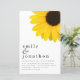 Casamento com tipografia moderna gigante de girassol. Um tamanho maior de 5,5" x 8,5" a um preço orçamentário, em um STOCK CARD SEMI GLOSS de 110 lb, excelente de convites, aproximadamente na mesma espessura de um cartão postal, ou um estoque LINEN elegante de 110 lb - para um luxo, ligeiramente mais fino, com um valor de excelente. OBSERVE QUE OS ENVELOPES OPCIONAIS SÃO UM POUCO MAIORES EM TAMANHO A 6,75" x 9" aprox. Este alternativo de tamanho de orçamento também está disponível em outras opções de papel. O papel FELT de 100 lbs é colorido por buff, NÃO branco, então adiciona um toque rústico. O estoque de papel MATTE de 80 lb é branco brilhante, para impressão nítida, excelente para seus menus e programas, enquanto o papel SATIN de 80 lb é fino e leve, ideal para gabinetes. Um girassol gigante está no canto superior direito e seus primeiros nomes são grandes em na moda para baixo à esquerda com os detalhes embaixo. Personalize facilmente o texto.