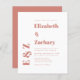 Este convite de casamento simples e moderno apresenta texto de terracota sobre um fundo branco. Adicione os nomes e as iniciais do monograma da noiva e do noivo à tipografia na moda bold e os detalhes na fonte sans serif. O reverso é uma sombra de terracota sólida. NOTA: os envelopes não são incluídos automaticamente nestes convites de orçamento, portanto lembre-se de escolher a opção "envelopes brancos"!