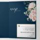 Este design de convite para casamento, marinho de três vezes de de flores, de cor azul-pastel e azul-marinho, com simples tipografia moderna e elegante caligrafia, apresenta belos bastidores clássicos de chic, para definir um tom sofisticado para qualquer estilo de evento. Cada produto é embelezado com rosas rosas rosadas e escamosas, cor-de-rosa, bem como fitas de pêssego e de marfim, dispostas com eucalipto e detalhes de folha verde, bem como armações geométricas de ouro de eterno para um aspecto luxuoso. Misture e combine esta coleção coordenadora para uma estética de casamento de sonho personalizada sem esforço para uma grande variedade de estilos casuais e formais. Para designs mais coordenadores, esse design também está disponível em branco e preto. Tal como acontece com todos os nossos design, se tiverem perguntas ou pedidos especiais, por favor, perguntem.