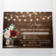 Luzes de cordas-serras russas e jarro de pedras com burgundy, vermelha, Marsala, marrom, marfim, buquê floral de cor escamosa e folhas de eucalipto sobre fundo de madeira 3 em 1 triplo convite para casamento com cartão RSVP autoendereçado e cartão de detalhes de casamento. Entre em contato comigo para obter ajuda sobre a personalização ou se você precisar de outro produto com este design.