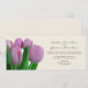 Um convite de casamento com uma imagem de tulipas cor-de-rosa à esquerda. Personalize o texto à direita. A redação é da noiva e do noivo.