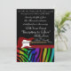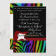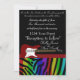 Perfeito para um casamento, trocando votos num presente de amigos. Este cartão impresso de zebra arco-íris fará de qualquer casamento o melhor que se lembrar, com o arco-íris e o convite preto. Violão elétrico vermelho e uma faixa vermelha através. Com a noiva e o nome do noivo acima do pescoço do violão.