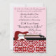 Perfeito para um casamento, trocando votos num presente de amigos. Este cartão vermelho de Fringe de Rico fará de qualquer casamento o melhor que se lembrar, com o convite vermelho e rosa. Padrão de borda de rico vermelho no fundo e uma guitarra vermelha e uma fita preta com o nome da noiva e do noivo acima do pescoço do violão.