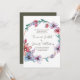 Uma coroa floral de aquarela em cores vibrantes enfeita este design.