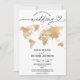 Convite de Casamento Destino Mapa Mundial Ouro Cor