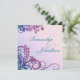 Celebre o seu dia de casamento com este belo convite de casamento roxo, rosa fuchsia, rosa, choro e espiral floral azul. Este belo convite de casamento para roxo, cor-de-rosa, cor-de-rosa fuchsia, cor-de-rosa e espiral floral azul oferece designs sofisticadas e elegantes, perfeitas para convidar todos os seus amigos e familiares mais próximos.