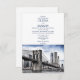 Nova Iorque Skyline Cityscape com Convite para Casamento da Ponte Brooklyn. Simples mas elegante design de convite para casamento. O design apresenta os nomes em uma fonte de script elegante. Pode ser personalizado para as cores do seu casamento para o texto e fundo. Gráficos, fotos ou monogramas podem ser adicionados para personalizar este modelo. SIGA-NOS! — FB: @ElegantInvitationAndMore IG: @Elegant_Invitation ZGROUPON