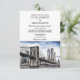 Nova Iorque Skyline Cityscape com Convite para Casamento da Ponte Brooklyn. Simples mas elegante design de convite para casamento. O design apresenta os nomes em uma fonte de script elegante. Pode ser personalizado para as cores do seu casamento para o texto e fundo. Gráficos, fotos ou monogramas podem ser adicionados para personalizar este modelo. SIGA-NOS! — FB: @ElegantInvitationAndMore IG: @Elegant_Invitation ZGROUPON