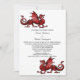 Celebre o seu amor com este convite de casamento do Tema do Dragão Medieval Vermelho, perfeito para casais sonhando com um casamento mítico! Este convite apresenta dragões medievais impressionantes, misturando um tema mítico com a escrita elegante e a tipografia moderna. Projetado com um layout moderno, ele mostra a noiva e o sindicato do noivo em meio a uma intrincada papelaria de casamento de dragões. Destacando detalhes essenciais do casamento, este convite captura a magia de um tema de casamento medieval. Ideal para casais que adoram fantasias, é preparado para se destacar em estilo e charme.