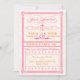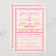 Este belo convite para o casamento cor-de-rosa e laranja, incluindo uma seção especial para recepção nas costas, com um fundo de xereque pálido e um fundo de damasco floral branco, tem uma sensação vintage, antiquada, com design de carta antiquada, incluindo elementos elaborados de escrita, uma faixa decorativa, estrelas e uma amante suja. O convite para o rico é inspirado por posters de design e na moda. O texto diz: "Você é convidado para o casamento de [nome personalizável] & [nome personalizável] [data personalizável] [hora personalizável]. Por favor, junte-se a nós para uma Celebração Inesquecível". Personalize ainda mais o convite com a cerimônia de casamento e as informações e endereços de recepção, cada um na sua própria caixa com fronteiras pontilhadas.