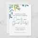 Convide seus convidados em estilo com este elegante convite de festas grande com sotaques botânicos azuis e mostarda. Uma mistura de escrita divertida e fontes clássicas dá a este cartão uma sensação moderna e celebratória. Perfeito para um evento pré-casamento, janta de boas-vindas ou pós-festa. Totalmente personalizável com seu próprio texto, local e informações de RSVP. Corresponde à Coleção de Casamentos Botânicos Azuis.