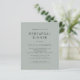 Simples Convite de casamento Janto de ensaio verde de silva leve. Um alternativo de 4,5 pol x 5,6 pol com preço inferior. Disponível em um STOCK DE CARTÃO SEMI-GLOSS 110 lb, que é a opção padrão (mais espesso para convites), OU um STOCK de PAPEL THINNER FINISH 80 lb FINISH (ideal para gabinetes). Os envelopes são um extra opcional e são ligeiramente maiores que o tamanho da placa. Fácil de personalizar com suas palavras. Você também pode alterar as cores do texto e do plano de fundo em ambos os lados, se desejar através da opção Personalizar mais.
