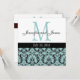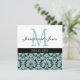 Convite de Casamento do Monograma de Damasco Branc